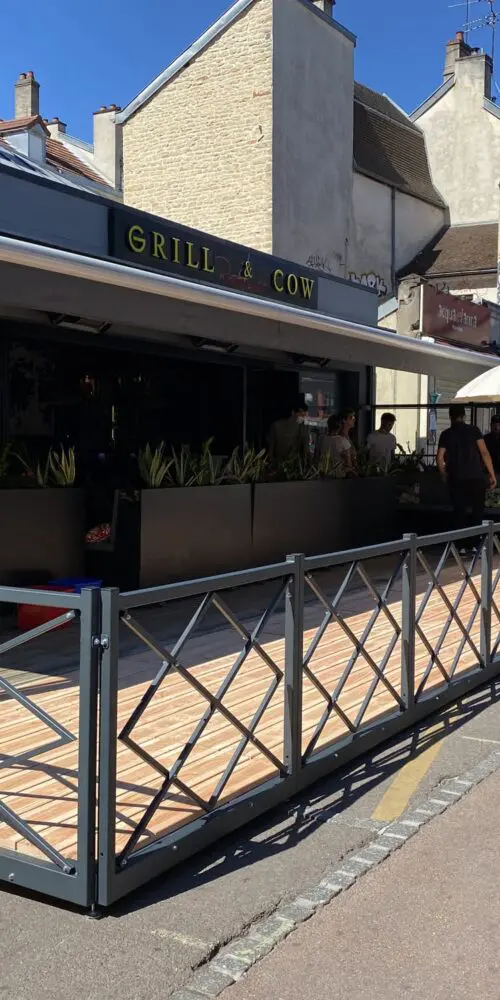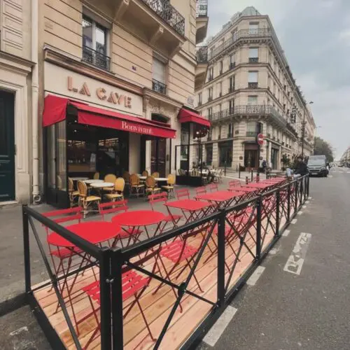 Des modules standardisés, normés au format des places de stationnement et adaptés aux contraintes urbaines permettant la mise en place rapide et pratique de terrasses éphémères :